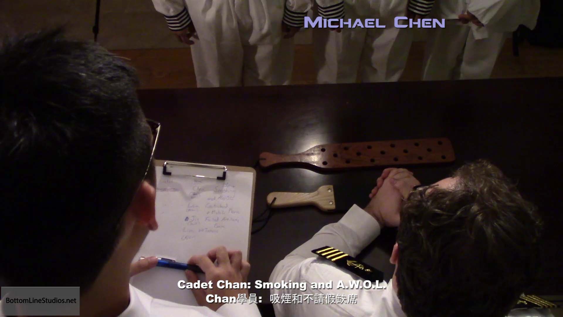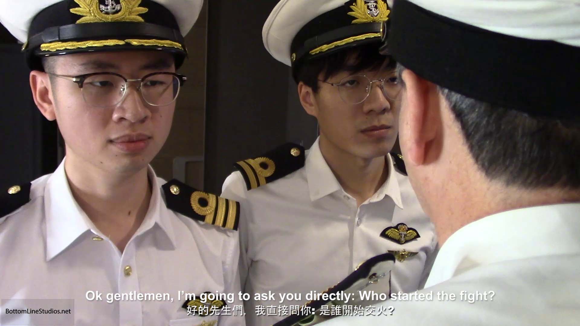 Lieutenants Li and Chen finish up punishing the cadets. Meanwhile, Commodore Coburn has had enough of delays in finding out who started the bar fight and intends to bring the matter to a conclusion one way or another.