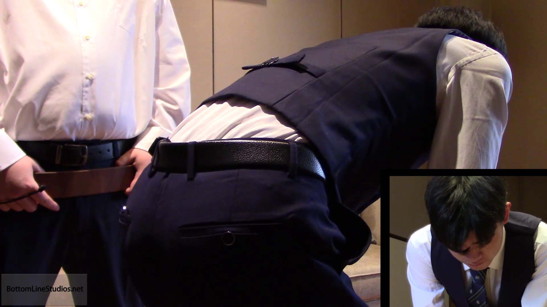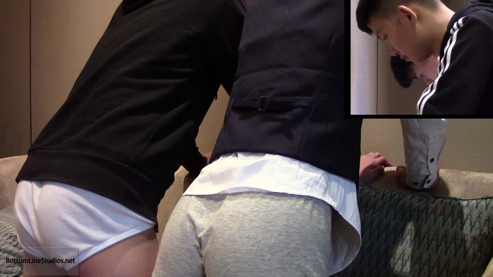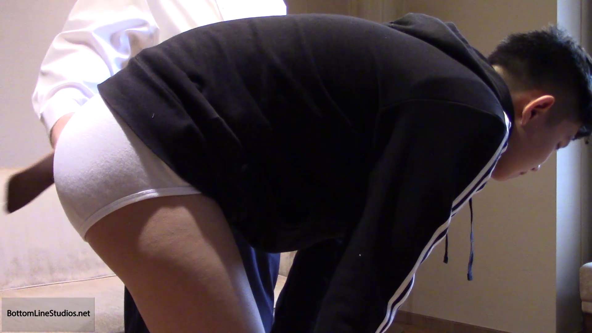 Adrian Lee promptly spanks Mickey Zhu when he catches the perverted boy masturbating to porn on the computer. Hector Palaiologos follows up on Adrian's "warm up", giving Mickey a lengthy and humiliating punishment, whacking not only the boys ass, but also his feet, hands and even genitals.