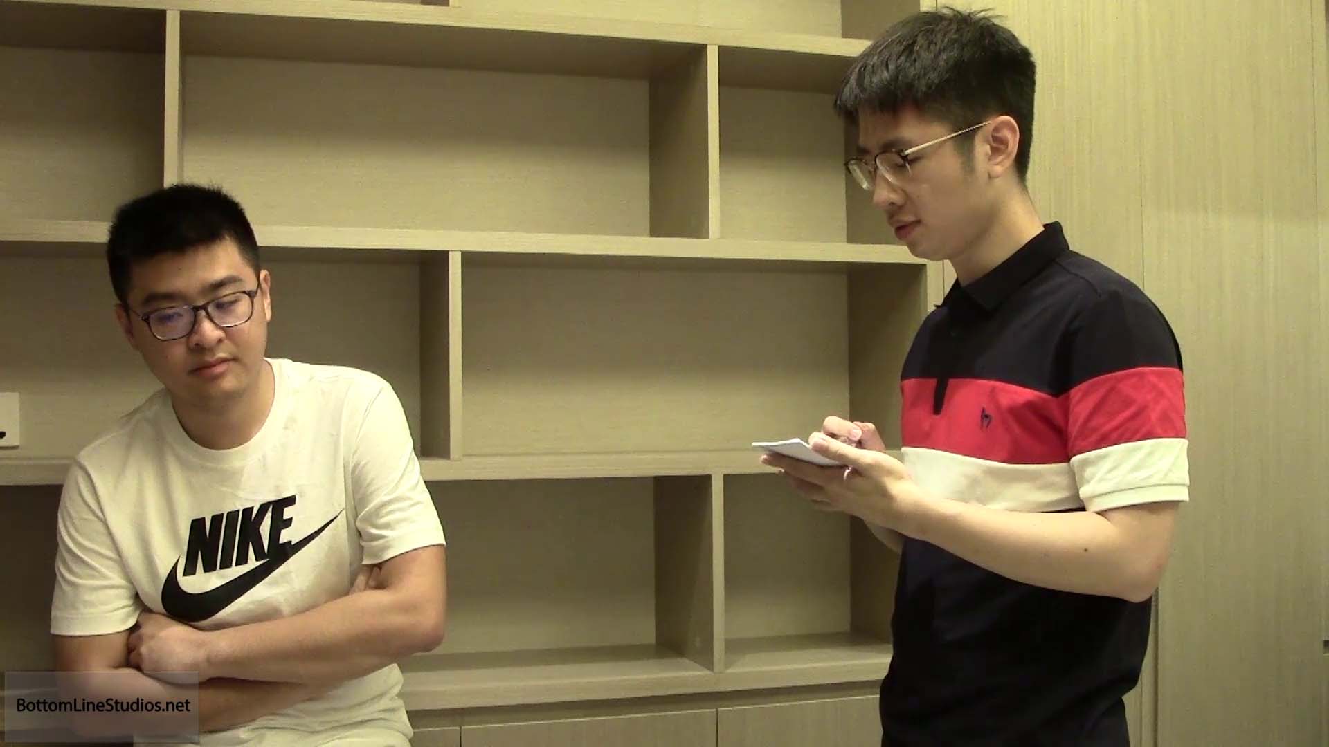 As Michael finishes his lesson, Mr. Palaiologos arrives to deliver one of his own - punishing the errand boys with American school paddle, before spanking the naked group together by hand.