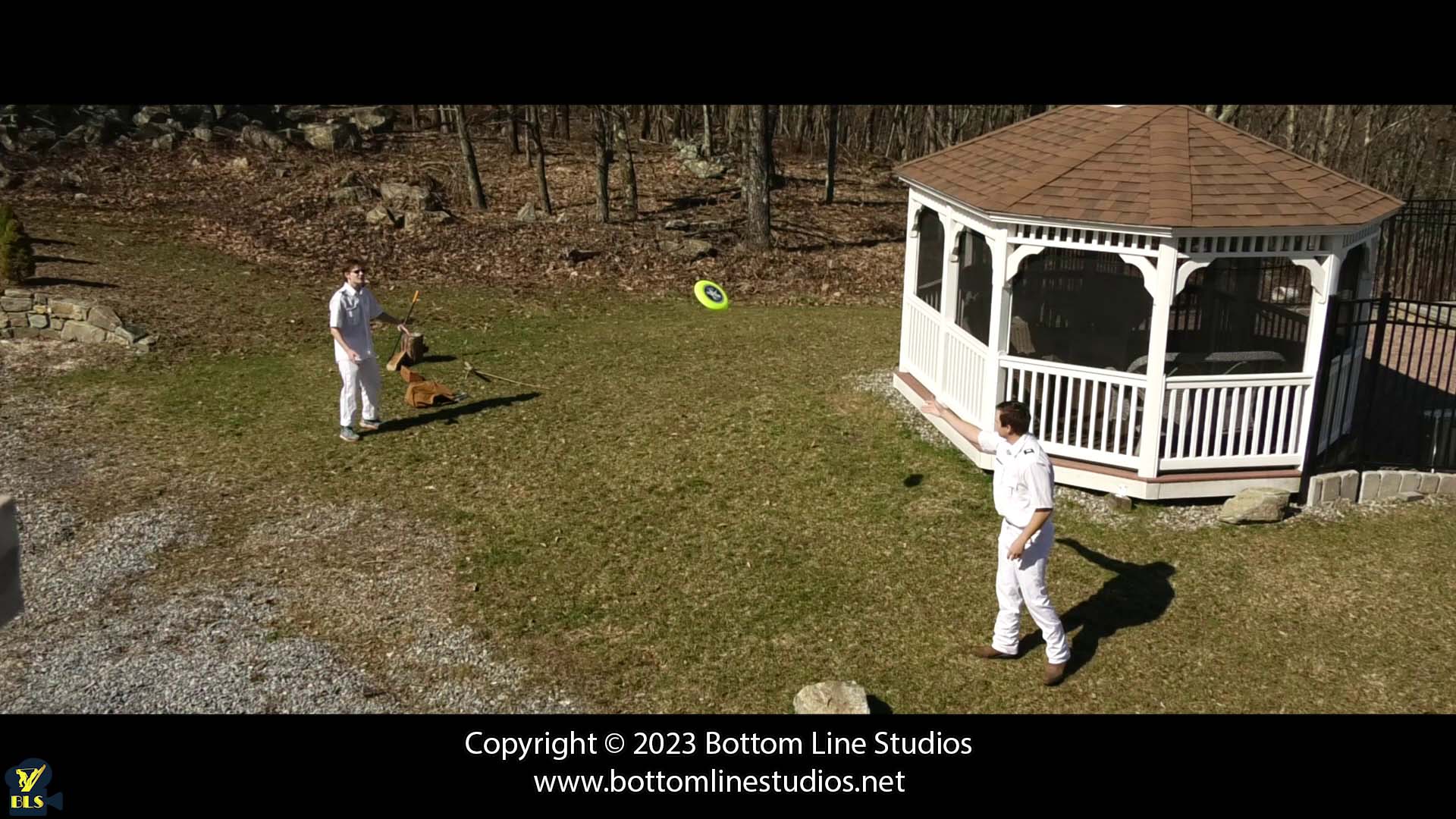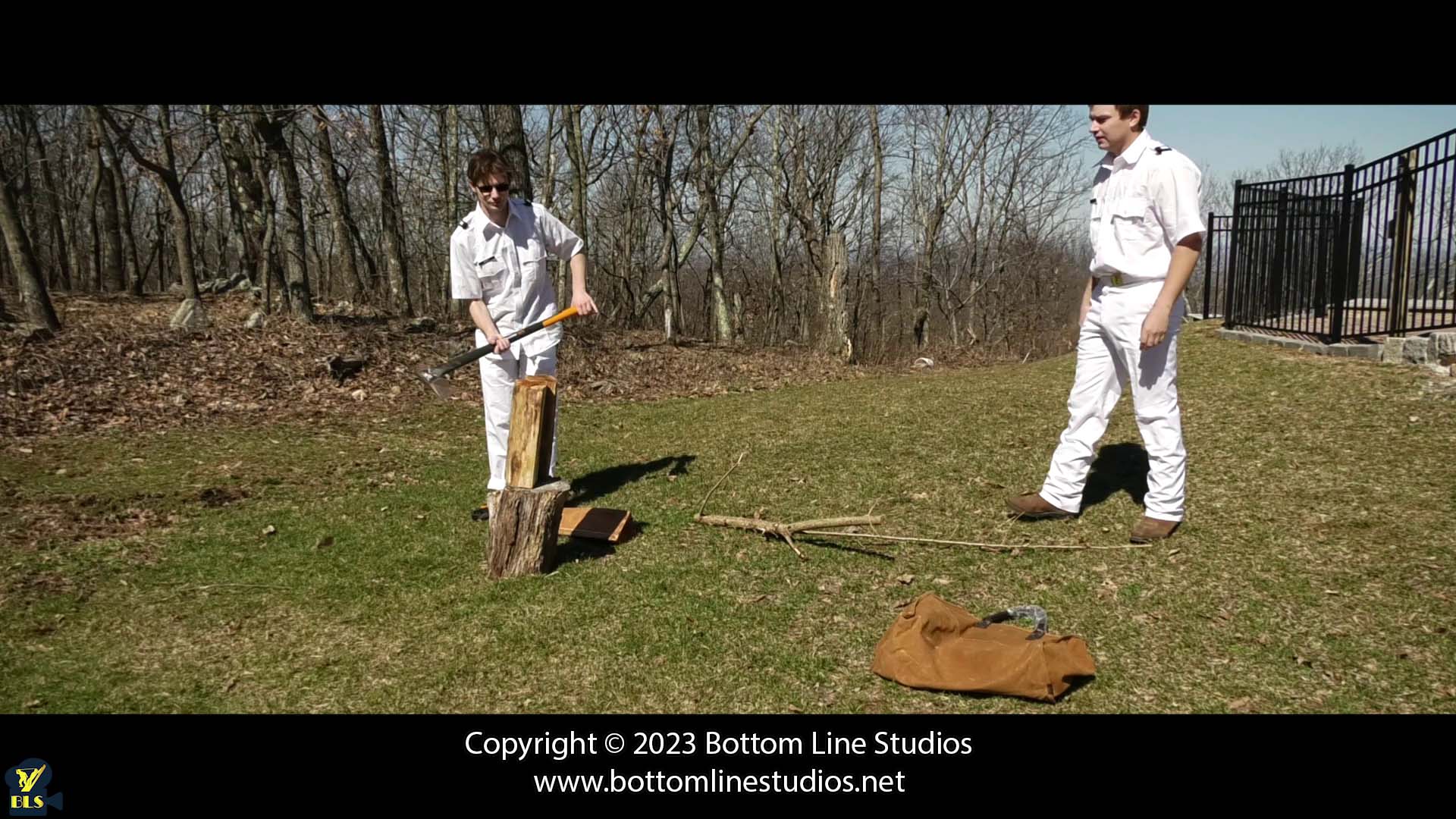 After being late for morning flag raising, Alex and David have been assigned the task of chopping wood. Lt. Jackson Ng isn't amused when the duo continue to goof off: betting money on frisbee and even comparing muscles...