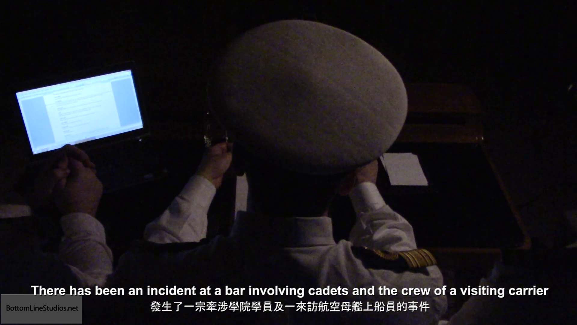 Lieutenants Li and Chen finish up punishing the cadets. Meanwhile, Commodore Coburn has had enough of delays in finding out who started the bar fight and intends to bring the matter to a conclusion one way or another.